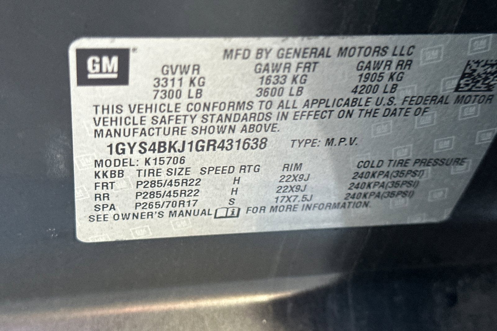 1GYS4BKJ1GR431638