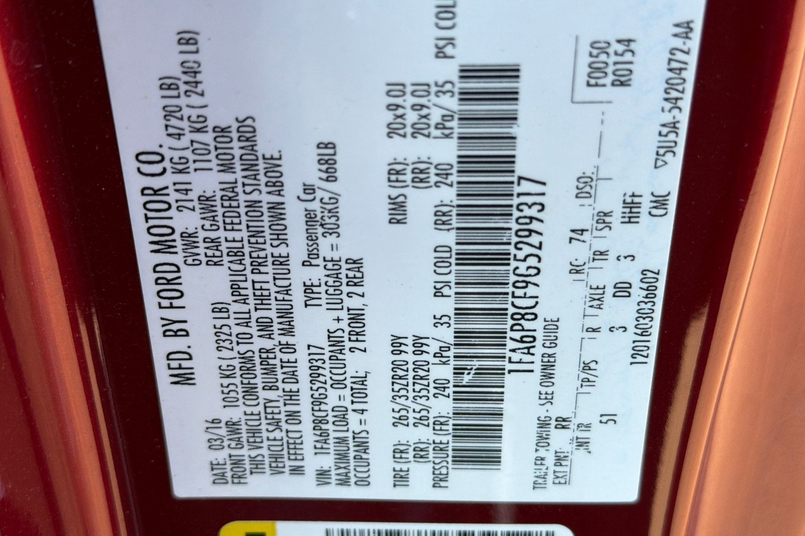 - Vehicle Name: Ford Mustang