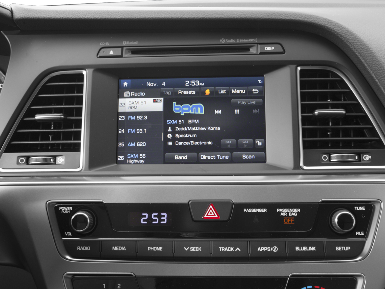 - AM/FM/HD/Satellite w/Clock, Speed Compensated Volume Control, Steering Wheel Controls and Radio Data System