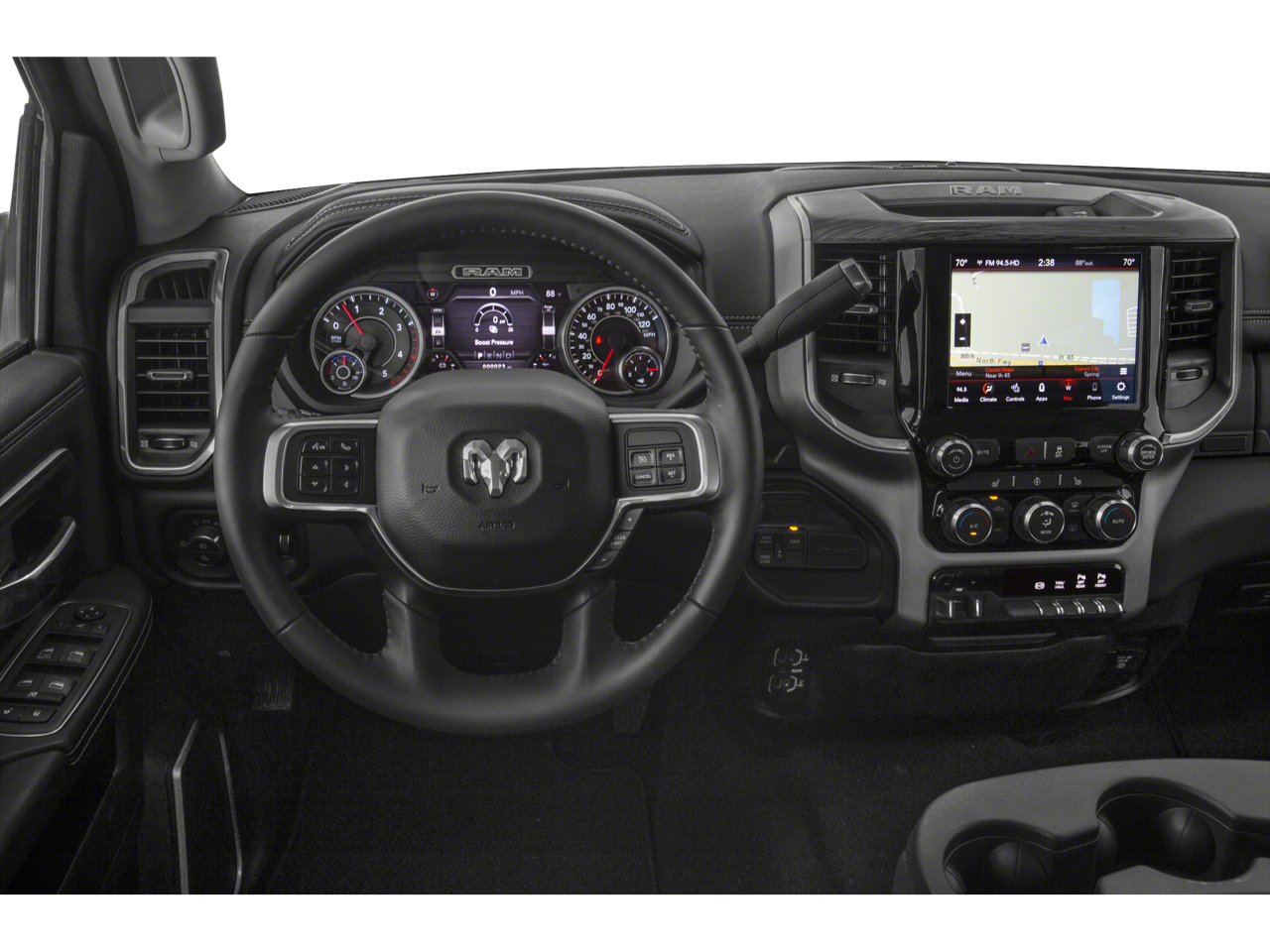 Step inside and experience the refined Laramie interior, featuring leather-trimmed seating, heated front seats, and a heated steering wheel for unmatched comfort. The Uconnect 4 infotainment system with an 8.4-inch touchscreen display keeps you connected and entertained, with Apple CarPlay and Android Auto integration.