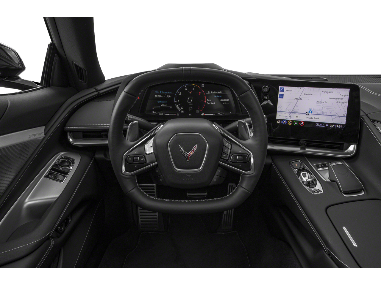 Inside, the Corvette's cabin is a masterclass in craftsmanship and technology. The Napa Leather Seating Surfaces with Perforated Inserts provide unparalleled comfort, while the Sueded Microfiber-Wrapped Steering Wheel and Upper Interior Trim Package create a truly premium feel. The Chevrolet Infotainment 3 Premium System with Navigation and the Heads-Up Display keep you connected and informed, allowing you to focus on the thrill of the drive.